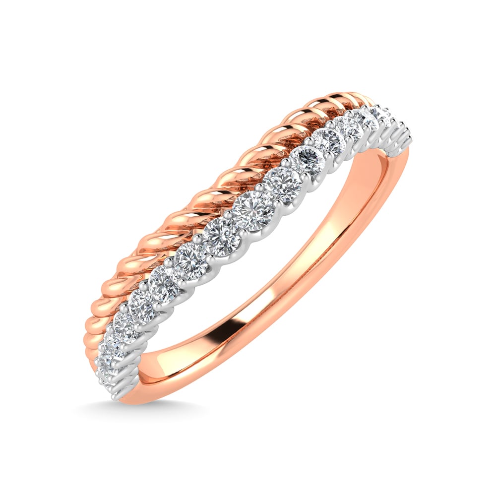 10K rose gold stackable diamond band with 1/5 Ct.Tw. diamonds for versatile layering.
