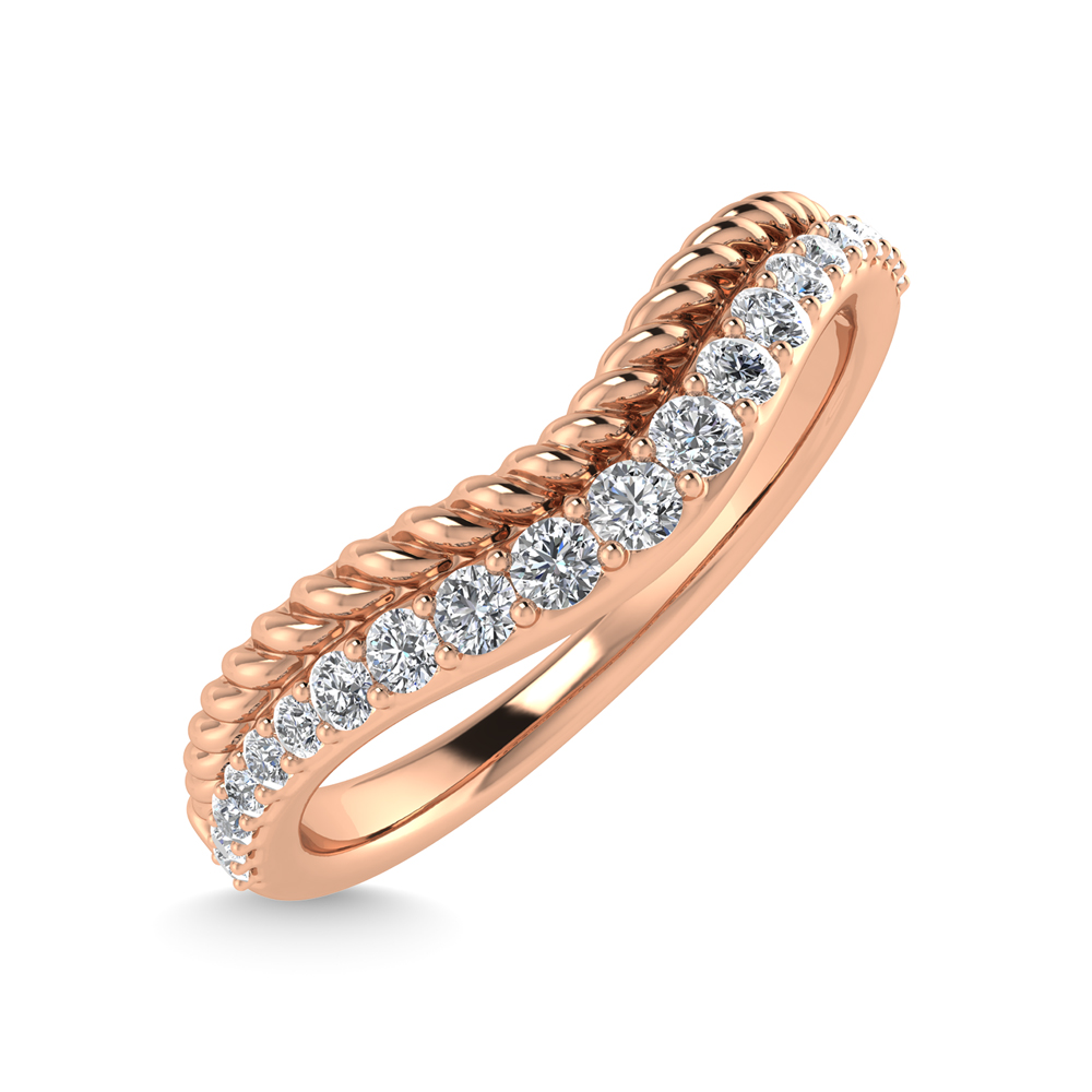10K rose gold stackable diamond band with 1/5 Ct.Tw. diamonds for versatile layering.