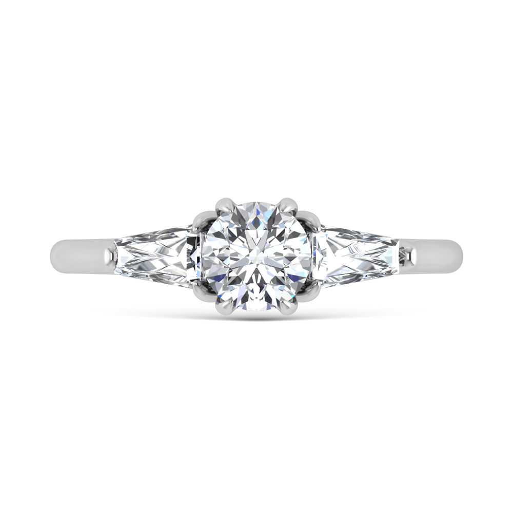 This stunning three-stone ring features a sparkling 3/4 CT Round Center diamond with two shimmering side diamonds, symbolizing past, present, and future. Crafted in high-quality gold or platinum, this three-stone engagement ring is perfect for proposals, anniversaries, and milestone celebrations. Total diamond weight is 1 1/4 ct.