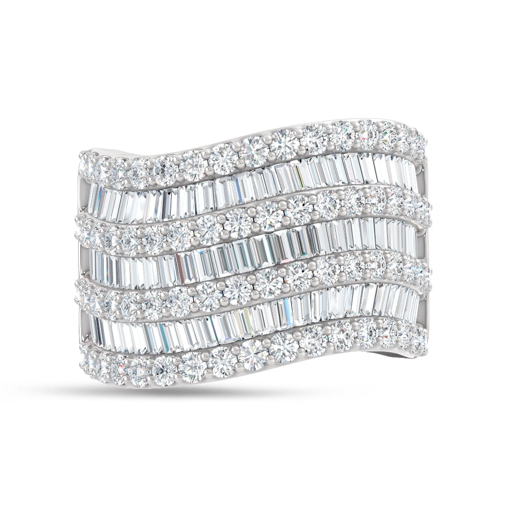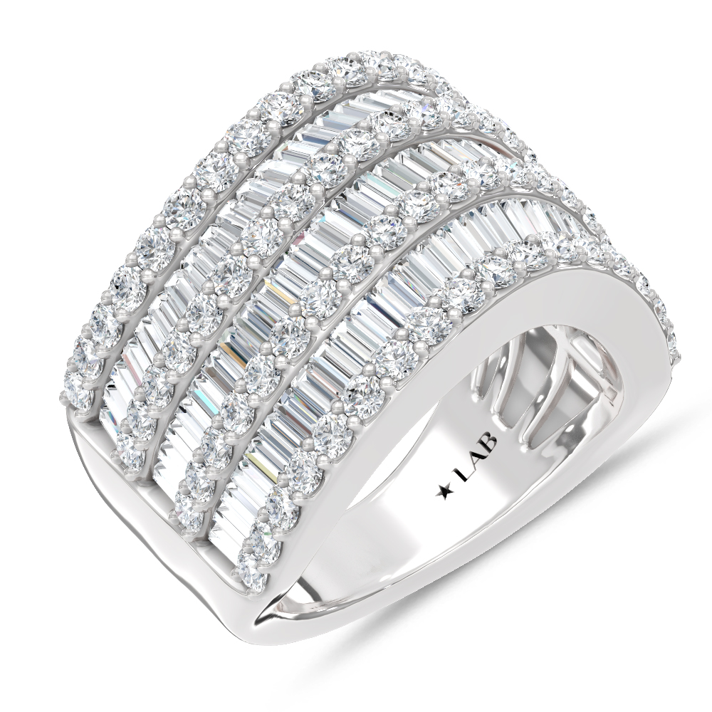This polished 14K White Gold fashion ring features round and tapered lab grown diamonds totaling 2 1/2 Ct.Tw., perfect for a refined, modern statement.