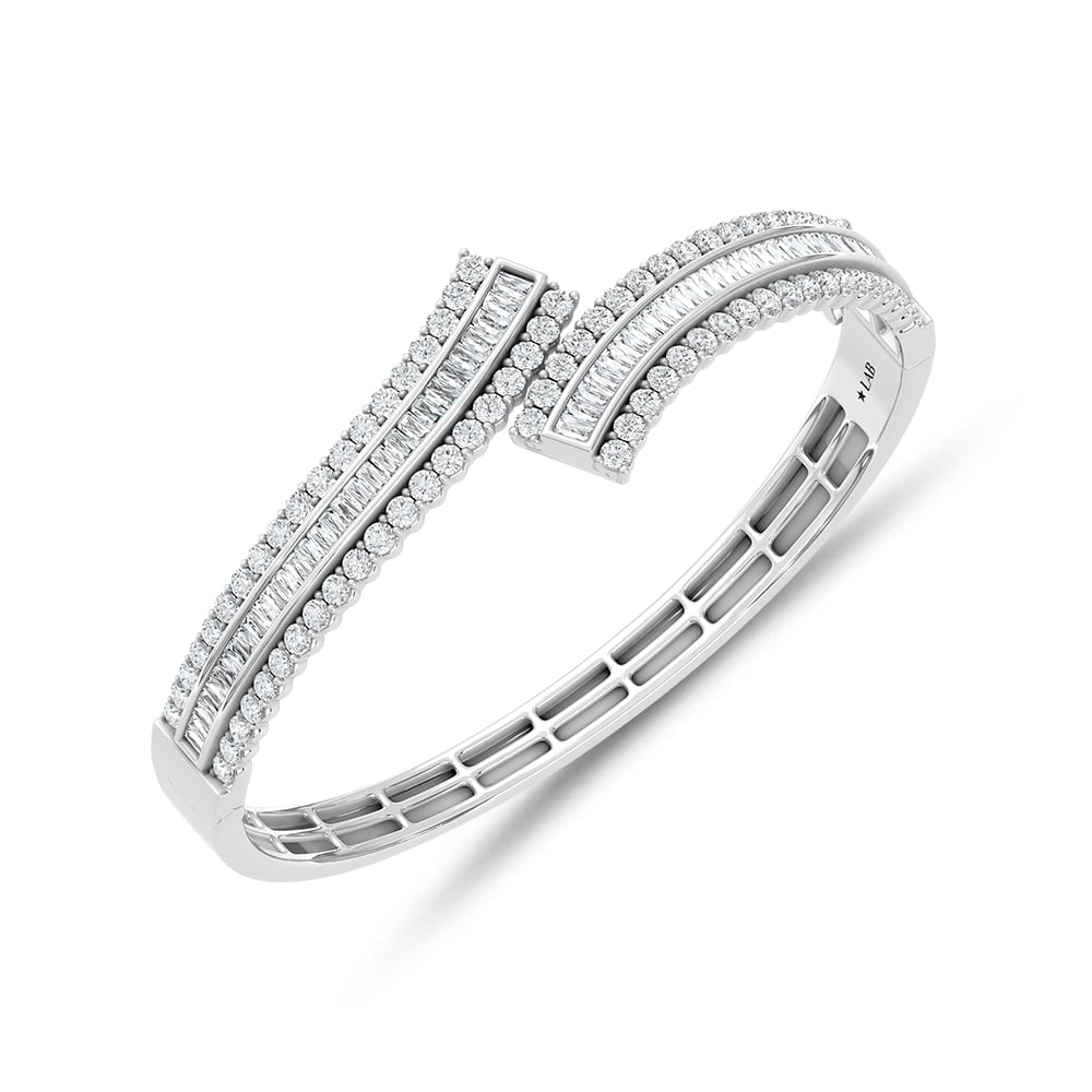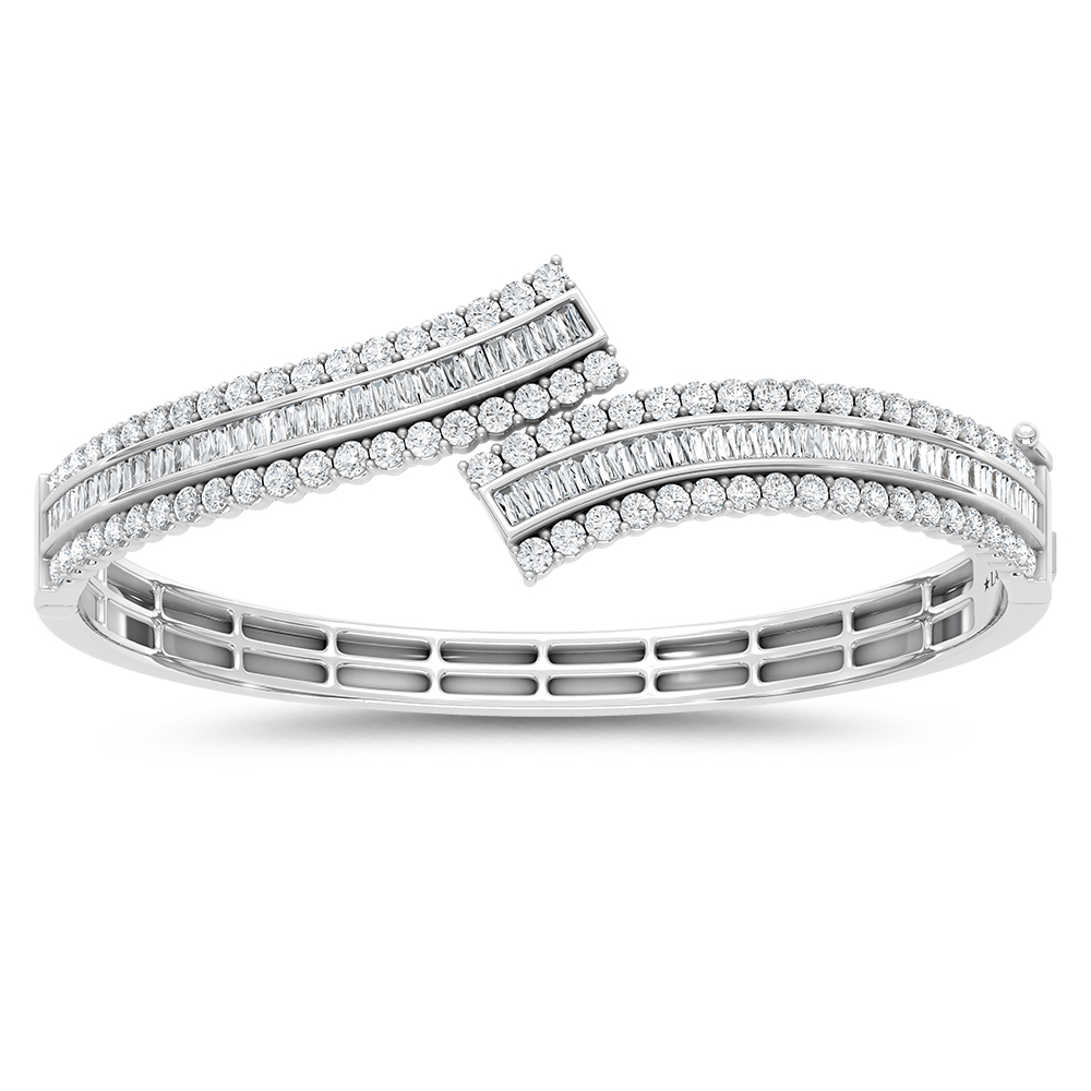 14K White Gold Lab Grown Diamond 4 1/2 Ct.Tw. Round and Tapper Fancy Bangle
