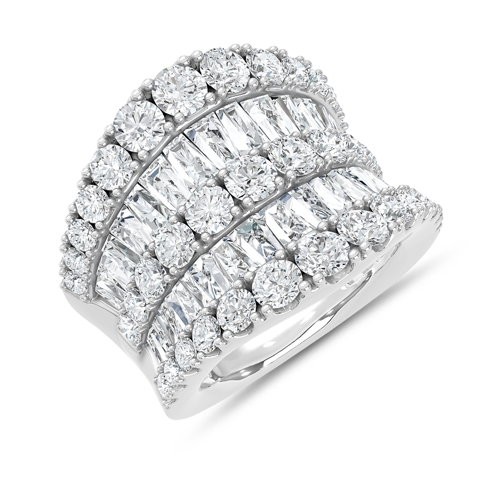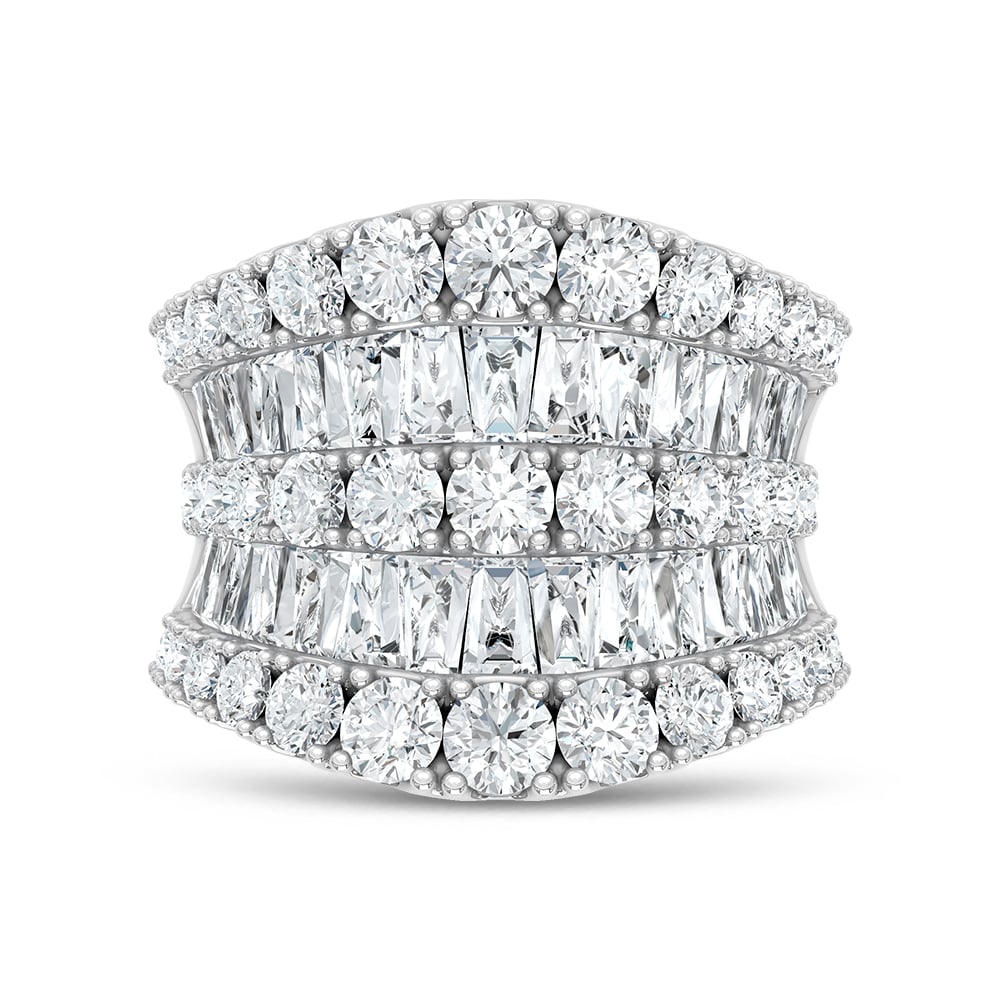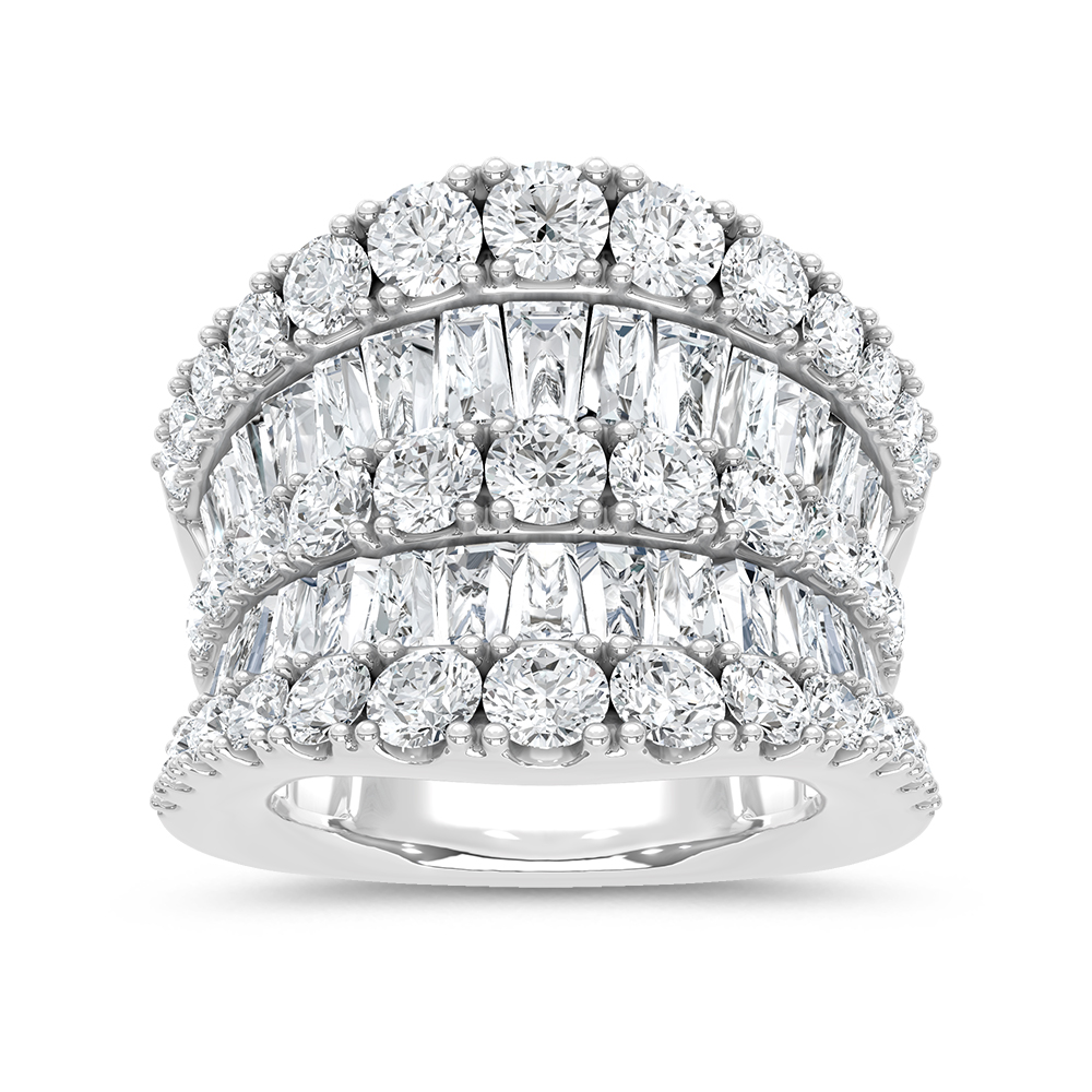 Make a bold statement with this luxurious 14K white gold fashion band, featuring 6 5/8 carats total weight of brilliant lab-grown diamonds. Its striking design offers maximum sparkle, perfect for special occasions or elevating everyday elegance.