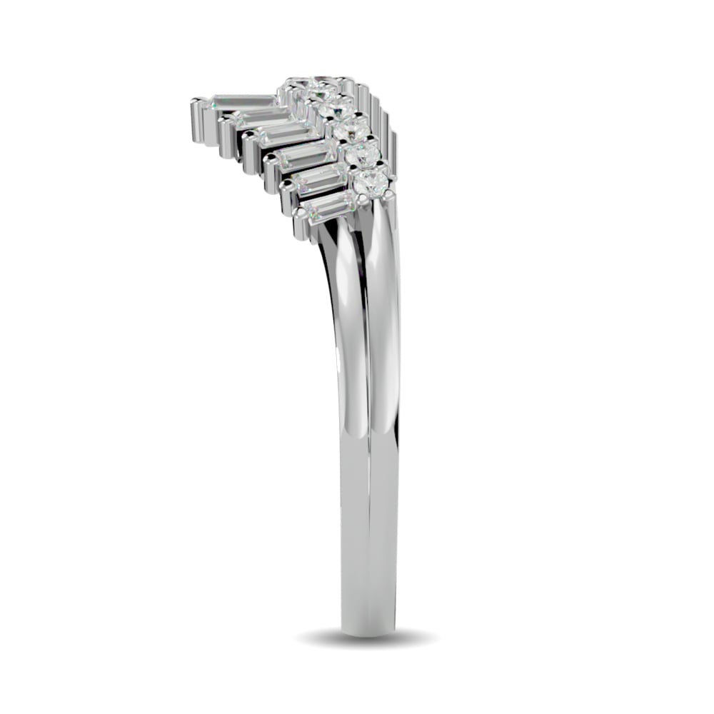 Indulge in sophistication with this 14K White Gold Bezel Wedding Band, showcasing 1 1/3 Ct.Tw. of stunning emerald-shaped lab-grown diamonds set halfway around the band. The sleek, polished white gold perfectly complements the striking diamonds, creating a design that is both modern and timeless. This exquisite piece offers a perfect blend of luxury and sustainability, making it the ideal symbol of lasting love and commitment.