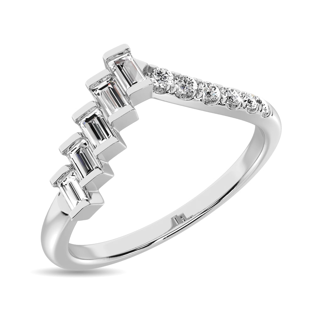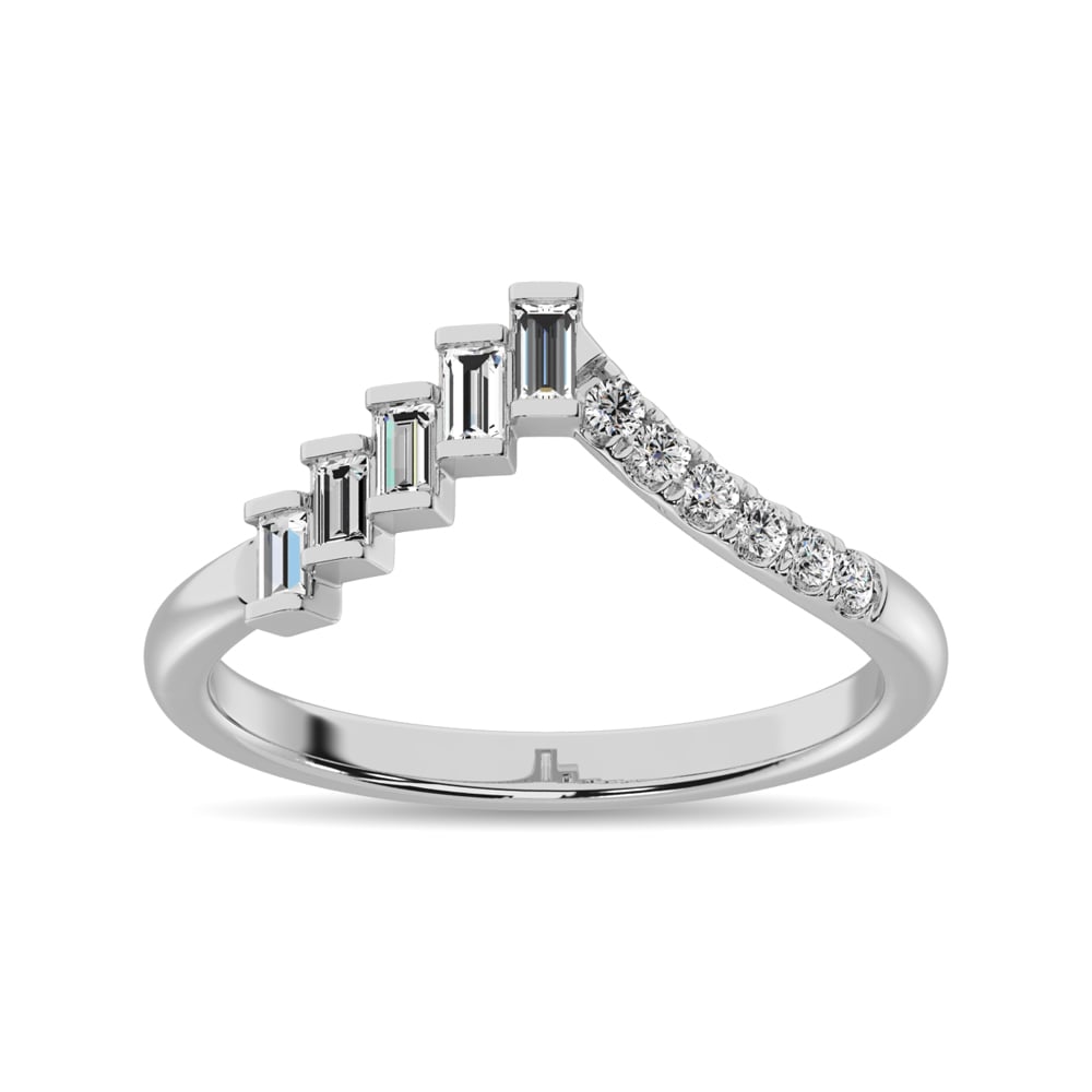10K white gold band featuring 1/4 Ct.tw. round and baguette diamonds for elegant design.