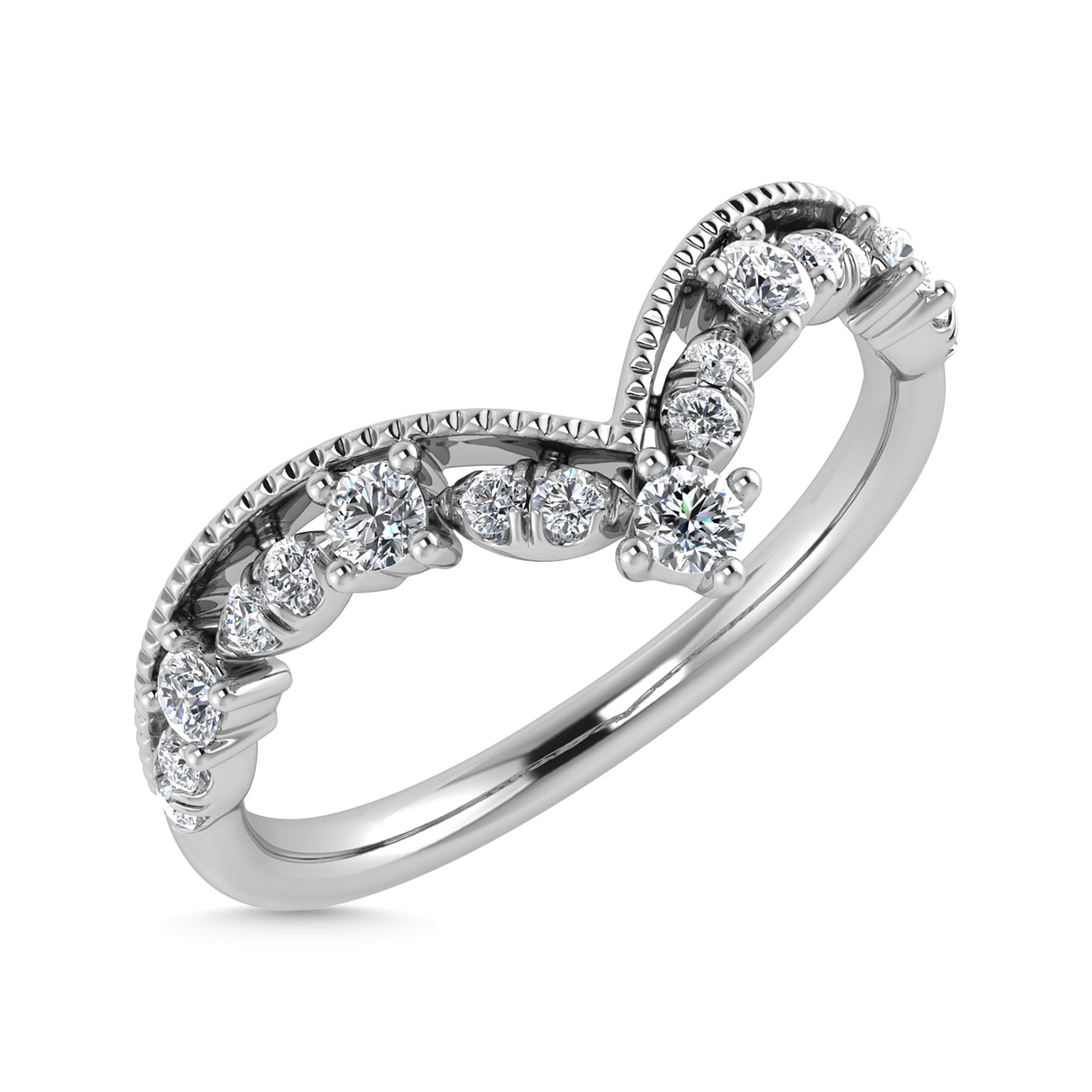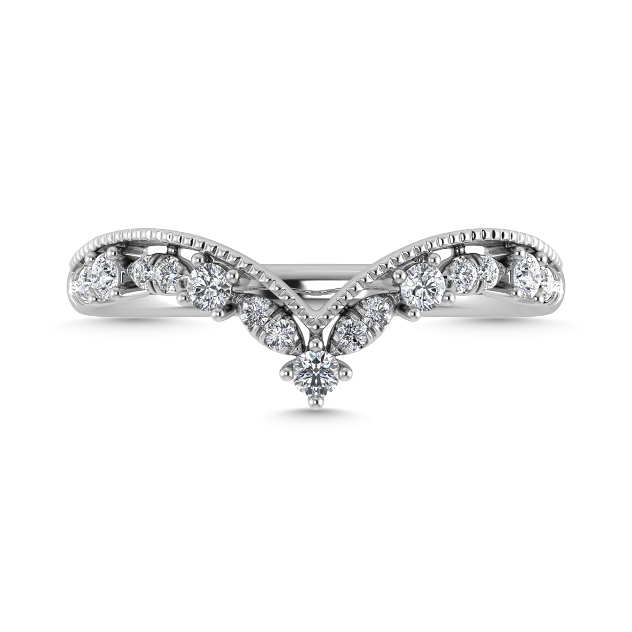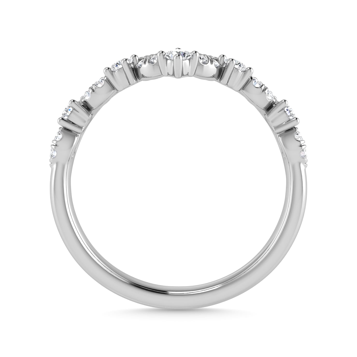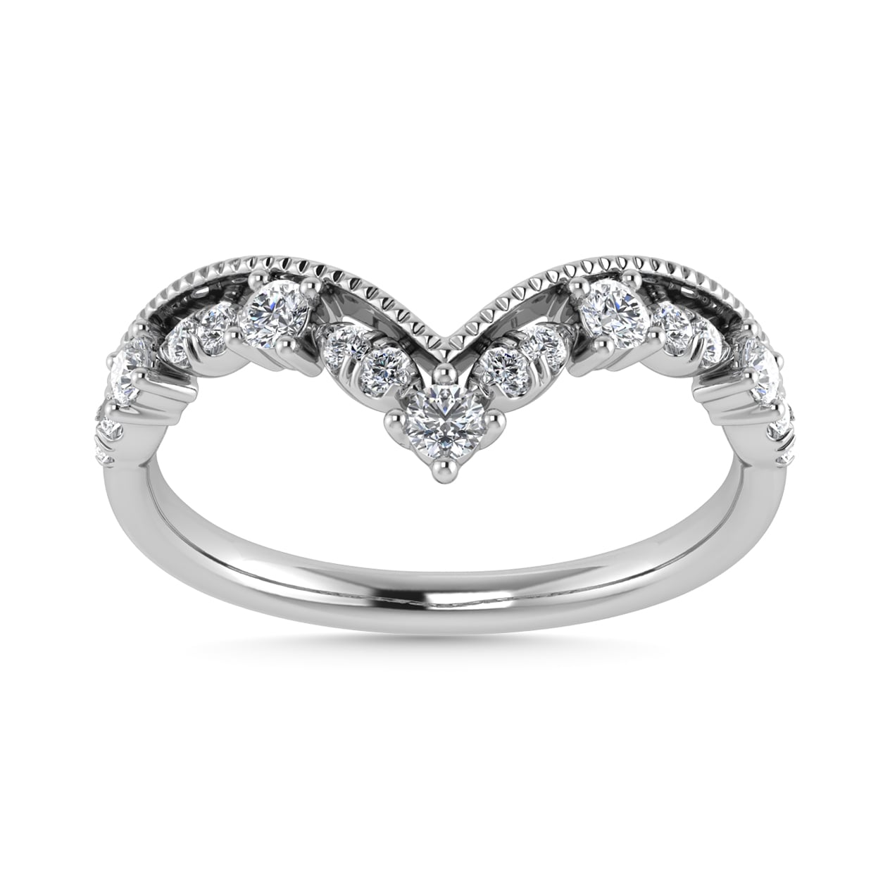 10K white gold chevron diamond band with 1/5 Ct.Tw. diamonds for subtle sparkle.