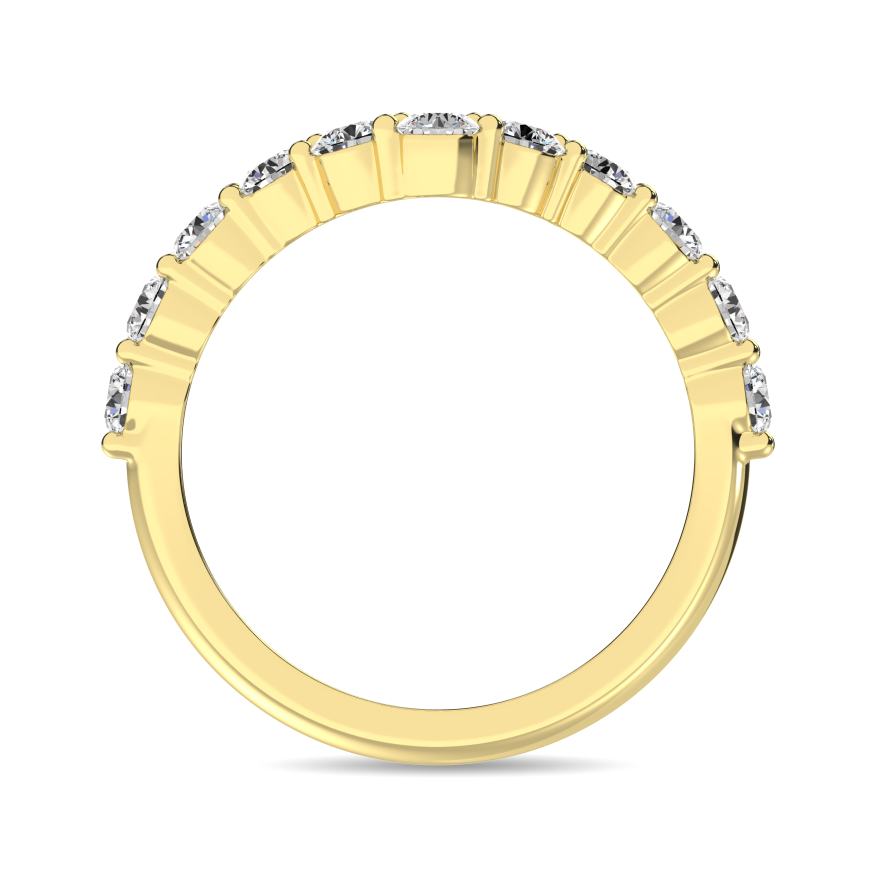 Exude elegance with this 14K White Gold Bezel Band, featuring 7/8 Ct.Tw. of stunning emerald-shaped lab-grown diamonds set halfway around the band. The sleek, polished white gold setting enhances the brilliance of the diamonds, creating a sophisticated and modern design. This exquisite piece combines both luxury and sustainability, making it the perfect symbol of enduring love and timeless beauty.