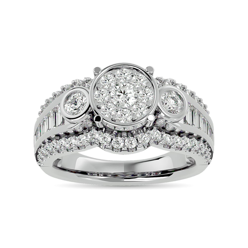 14K white gold engagement ring featuring 3/4 carat total weight diamonds for classic beauty.