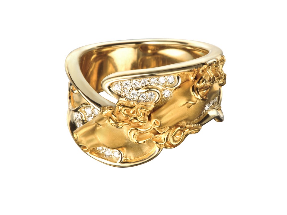 Carrera y Carrera 18K Yellow Gold Openwork Ecuestre mini Ring with Diamonds