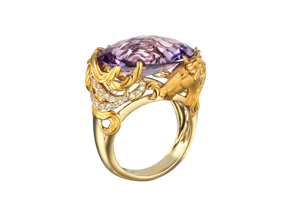 Carrera y Carrera 18K Yellow Gold Ecuestre Ring with Diamonds and Citrine Quartz