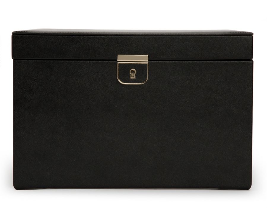Charming and sophisticated, Palermo takes cues from its namesake city on the side of a mountain by the sea. Sumptuous leather and chic gold recessed locks, Palermo Large Jewelry Box displays and organizes your jewelry in style. Includes LusterLoc™ anti-tarnish lining and lock & key with gold finish.