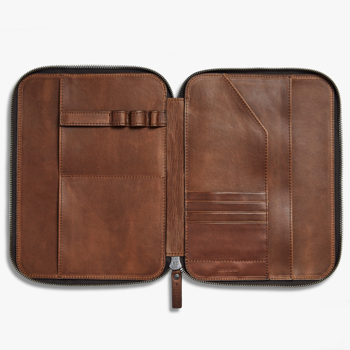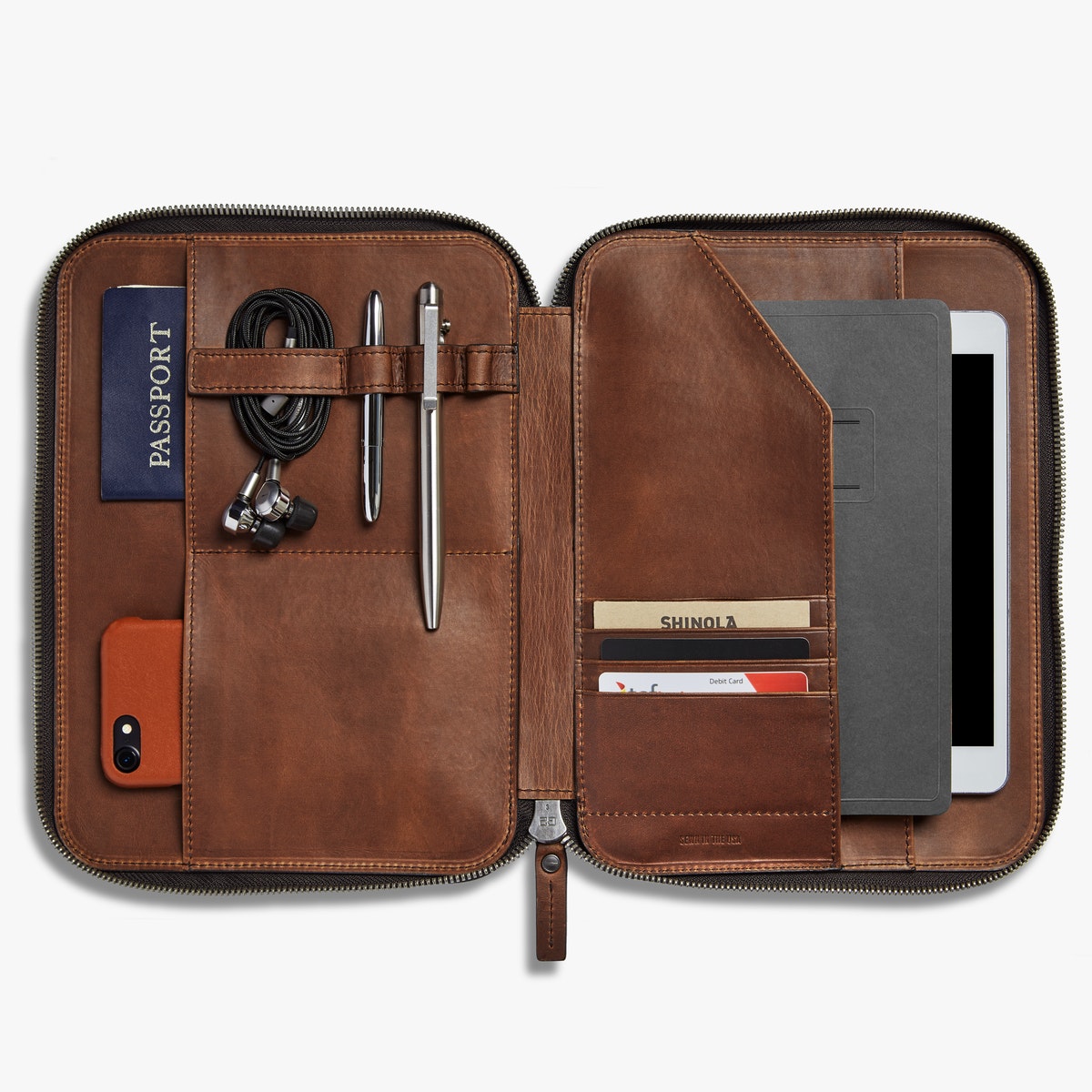 FEATURES -Storage: 1 passport compartment, 1 boarding pass compartment, 2 credit card compartments, and an additional large compartment -Material: Pebble leather exterior, ultrasuede interior